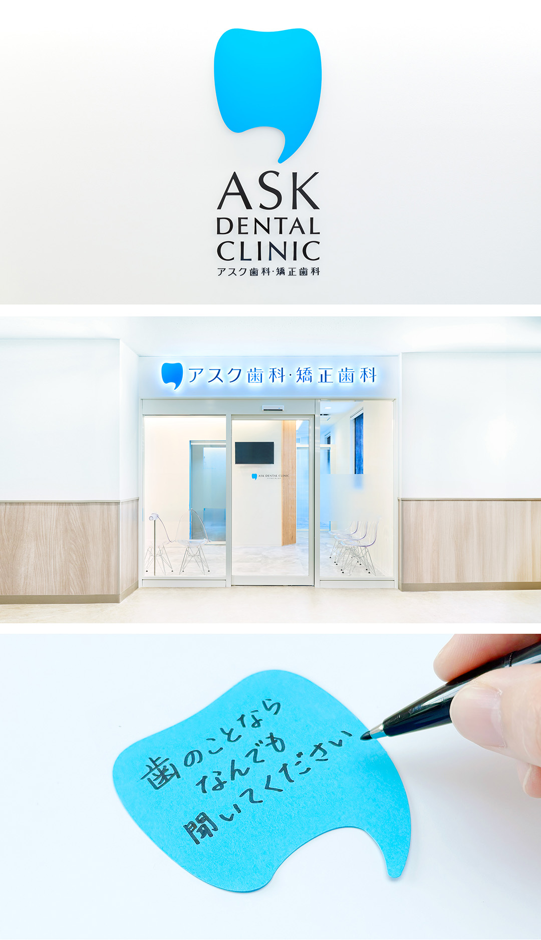 世田谷区千歳船橋に新しく開院した「アスク歯科・矯正歯科」。canariaはロゴやサインを中心としたVIを担当しました。