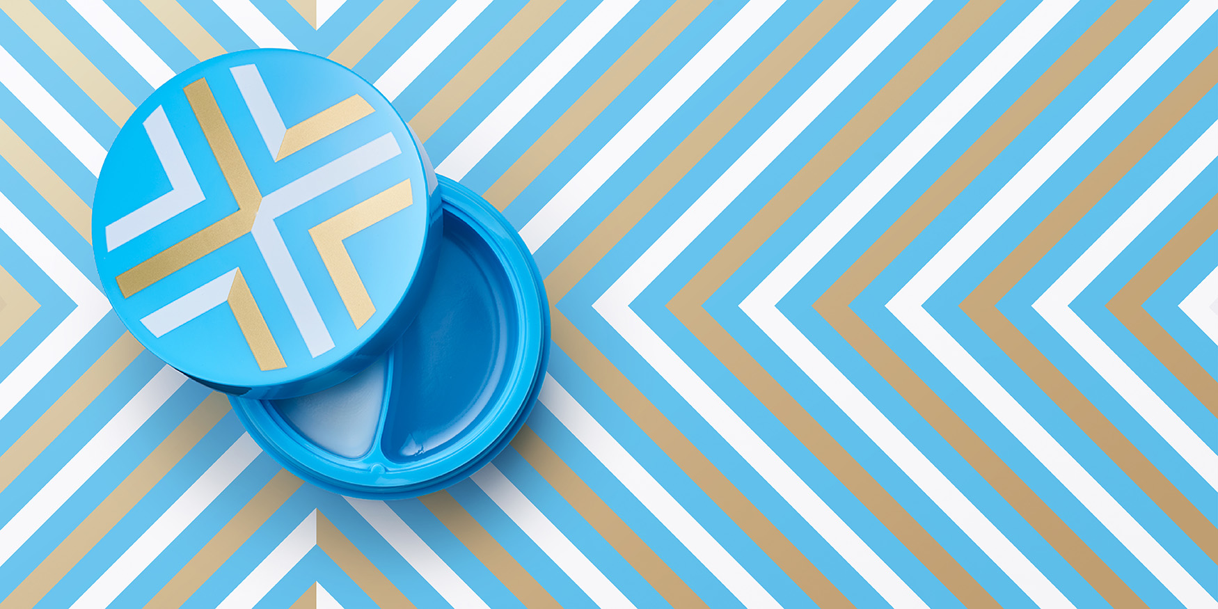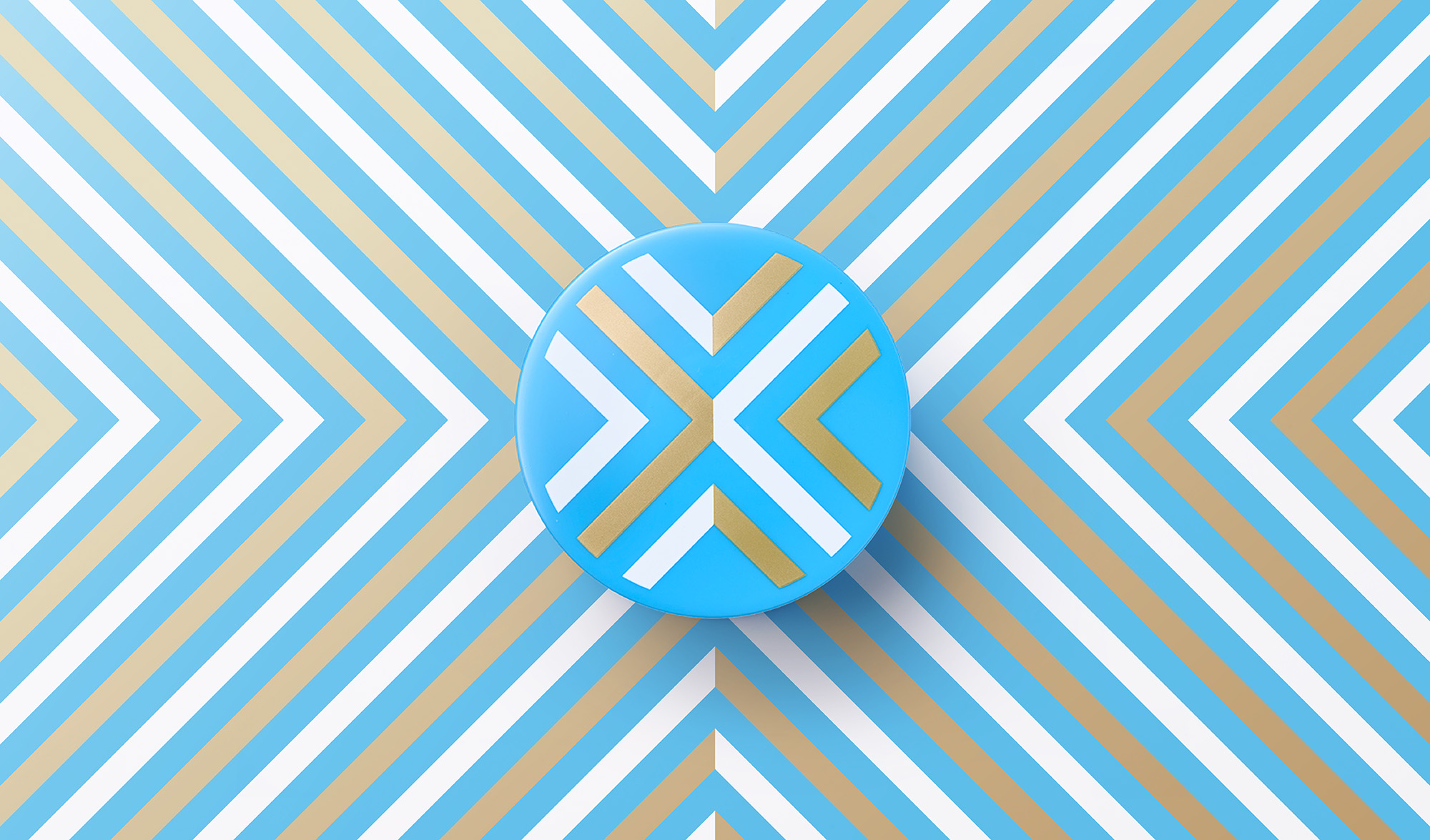 2つのカラーと掛け合わせを意味する「X」をモチーフにしたグラフィカルなビジュアルパターンを設計。