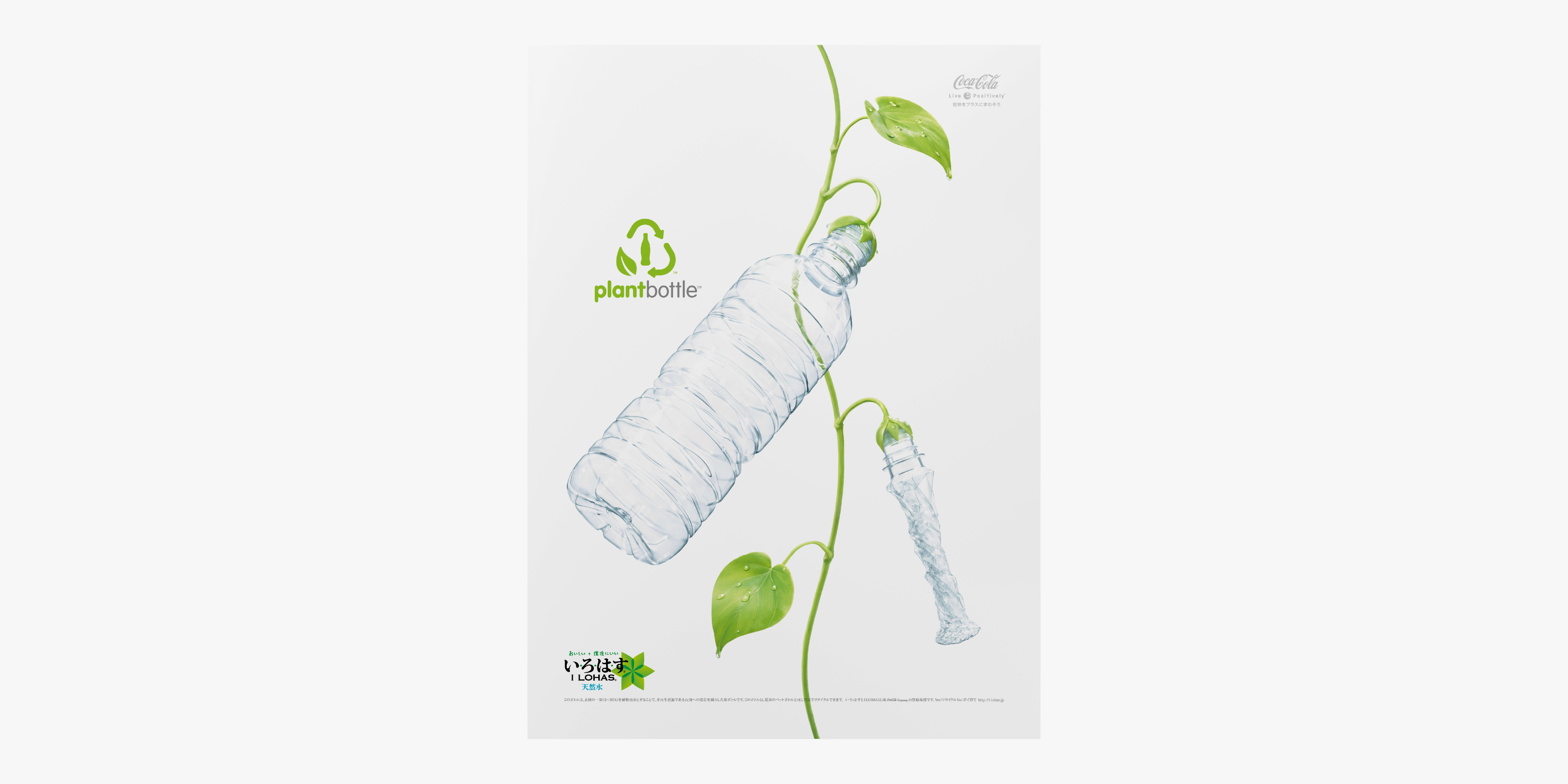 「いろはす」はフードマイレージを意識した日本の水で国内最軽量ボトル(12g)を開発、採用し、