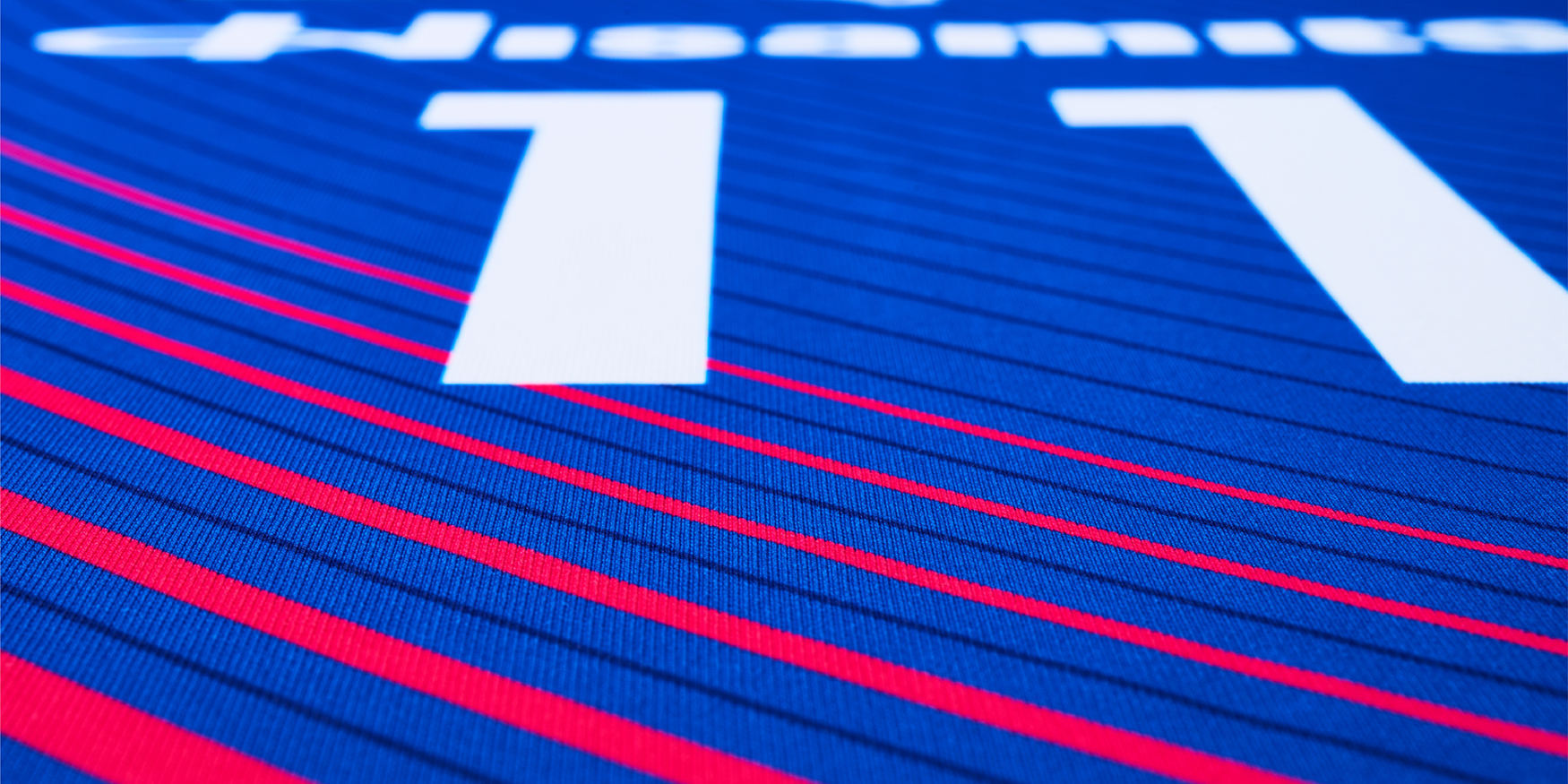 上下でひとつになるグラフィックは、チーム名の「スプリング」を、チームカラーであるブルーとマゼンタで表現。