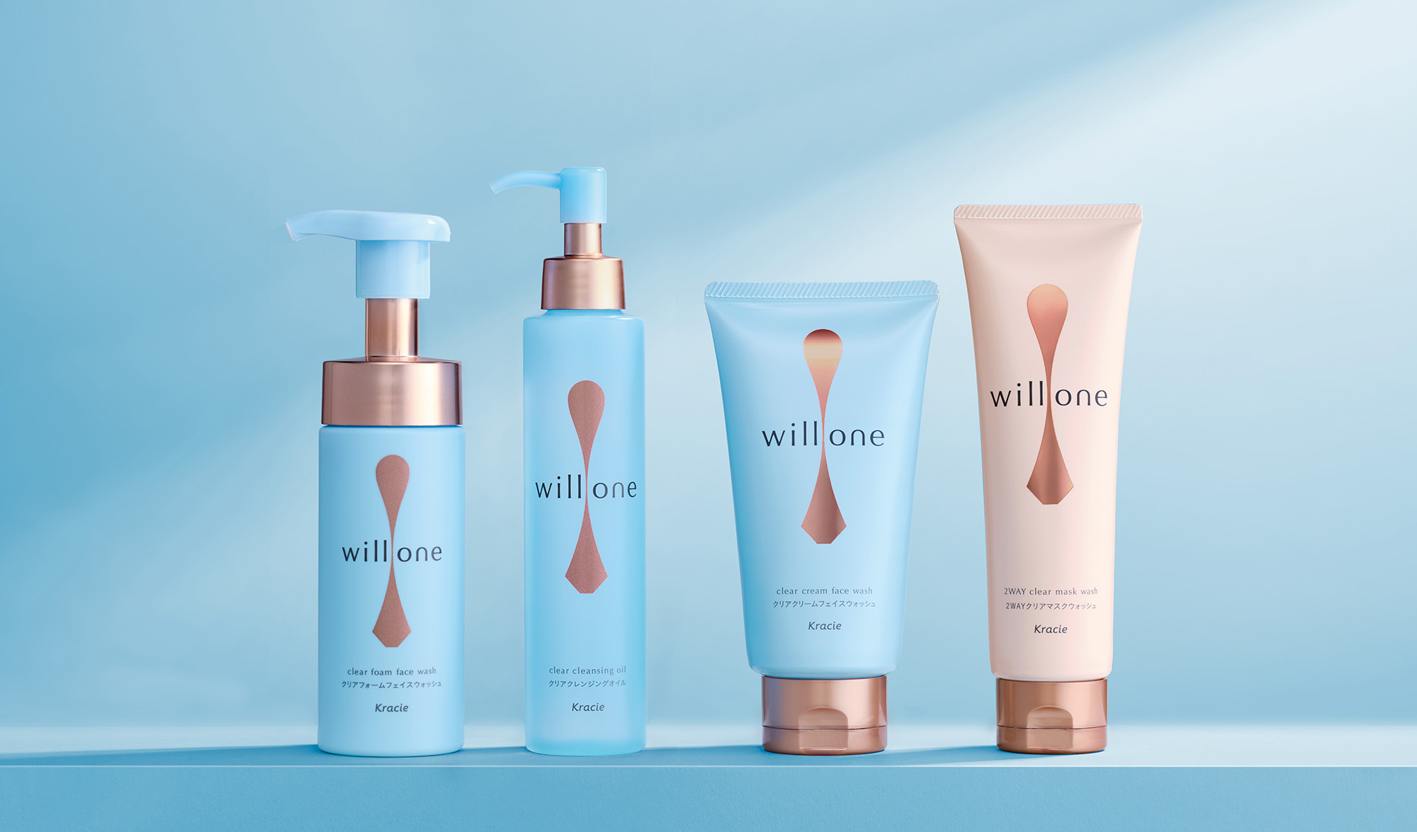 一度に、「汚れを落とす」「美容液を導入する」。 この一度に2つの効果を得られる機能性を、 上下の異なる形状の繋がりのシンボルで表現しています。 美しさへと導く機能性と高品質感をピンクゴールドに、 自分を褒めてあげるような優しさを、柔らかいシェイプにこめています。